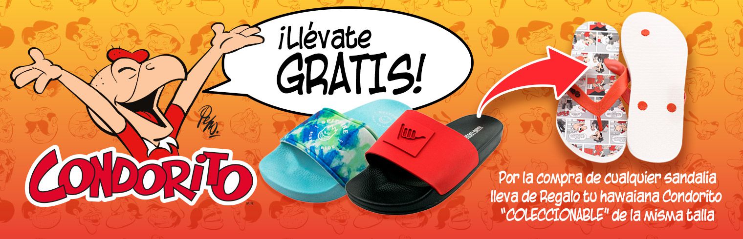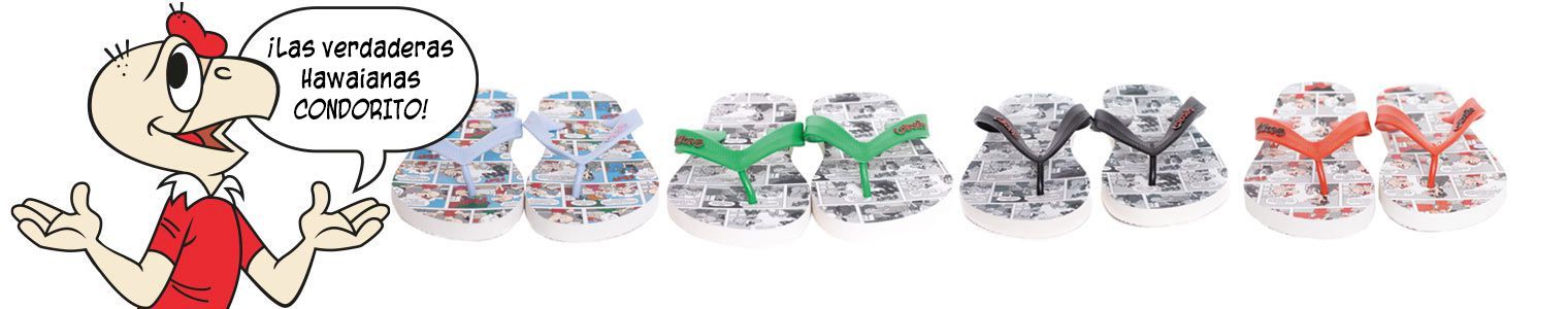 Por la compra de cualquier Sandalia en nuestra tienda online, te llevas unas hawaianas "Condorito Coleccionable" de regalo en la misma talla de las sandalias.