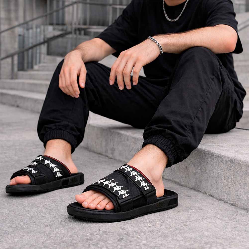 Sandalias Unisex Kappa Authentic Mitel Negro Blanco